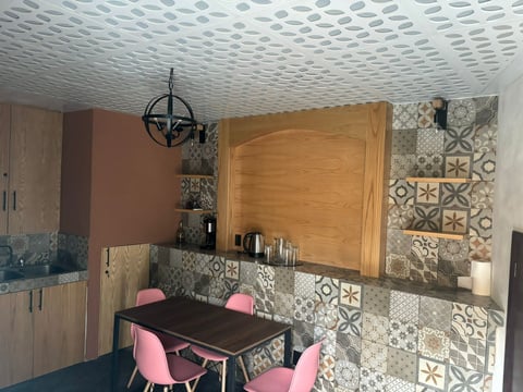 Dentro de los chalets, encontrarás amplios espacios completamente equipados para el confort de nuestros huéspedes, perfectos para disfrutar de una tarde de lectura junto al fuego o para pasar tiempo de calidad con tus seres queridos.